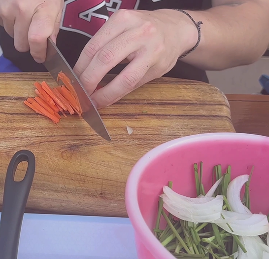 부재료인 양파와 당근도 채썰어 준비해둘게요