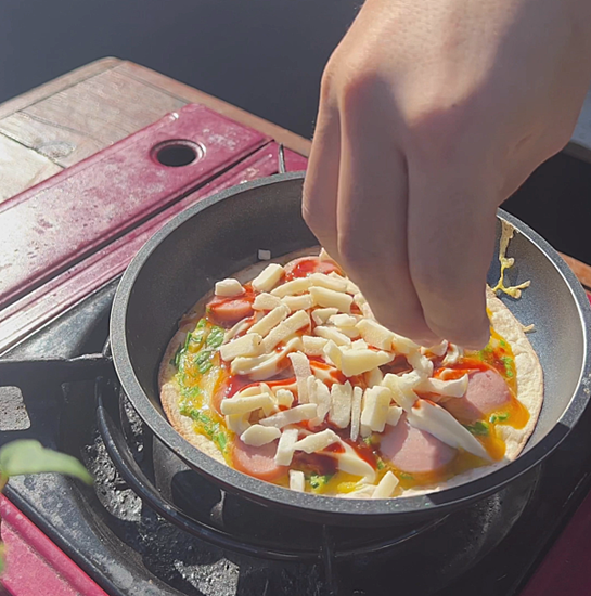 강불에 놓으시면 또띠아가 타기 전 타이밍을