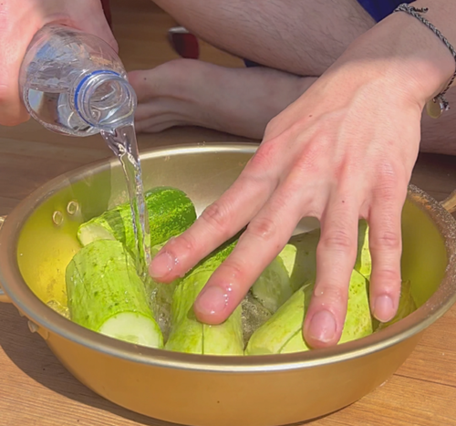 Pour water to about half of the cucumber and pickle until it is 50% soft
