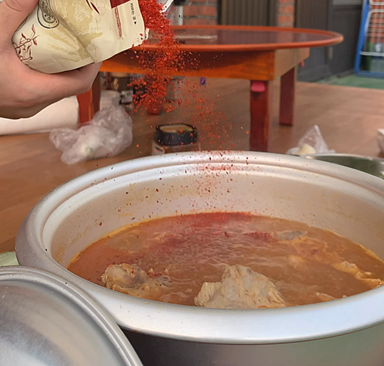 큰 솥에 감자탕을 끓여 약주와 함께 노나먹는 재미도 있고