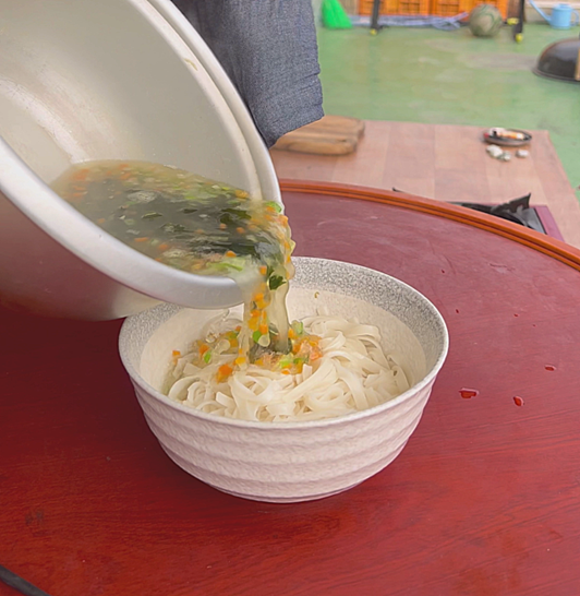 바로 쌀국수면위로 멸치 육수를 부어주세요.