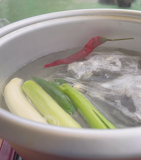 저는 멸치 다시팩 2개랑 짜투리 대파, 마늘 있어서 넣어줬고 끝에 살짝 매콤한 맛이 올라왔음 싶어