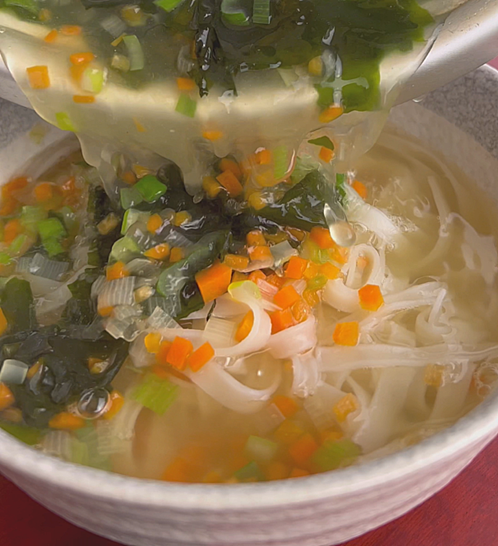 그래서 저도 당근, 대파, 미역 세가지를 멸치쌀국수 속 재료로 준비해줬는데요.