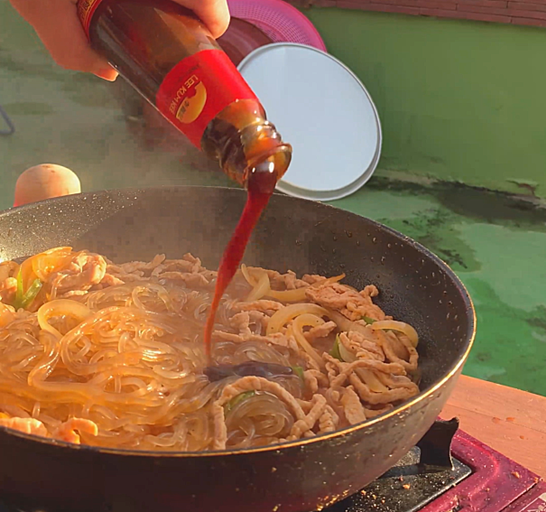 혹 너무 잡채가 말라있으면 고춧기름을 한스푼 더 둘러주세요.