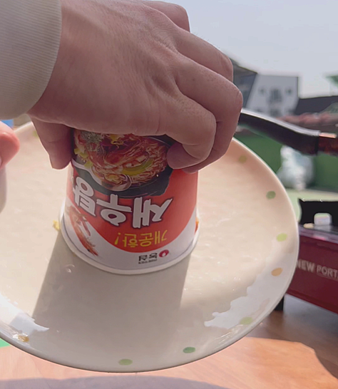 컵라면과 함께 잘 잡아 뒤집고
