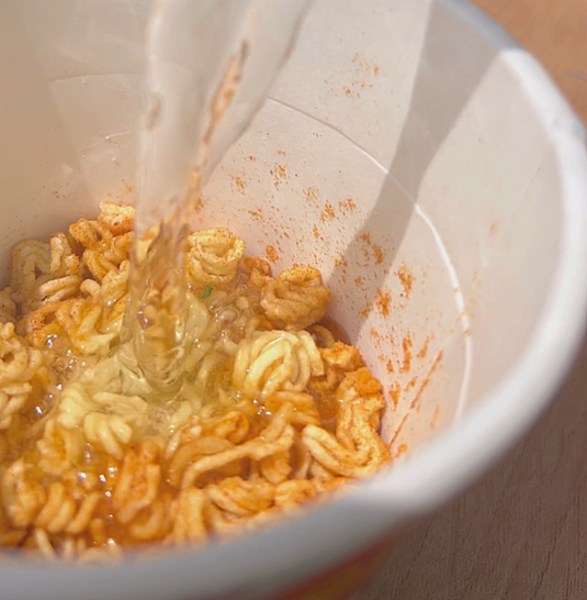 3. 불린 컵라면 붓기