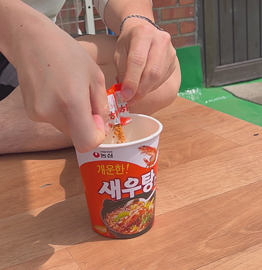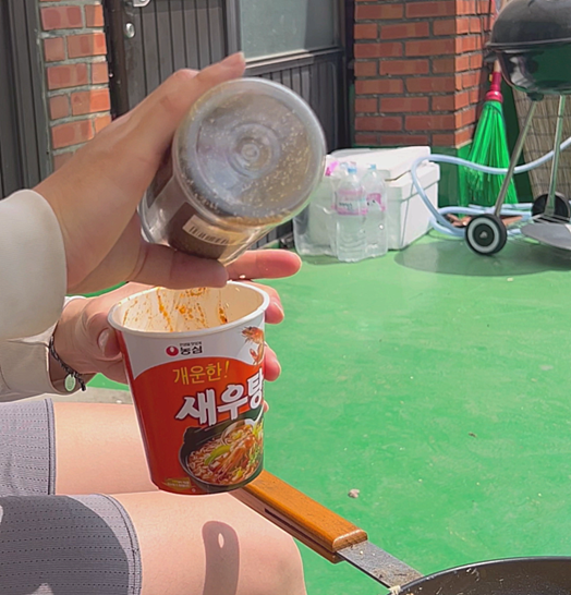 저는 새우탕면을 사용했는데 영상을 보니 신라면, 짜파게티, 카구리 등 어떤 컵라면으로